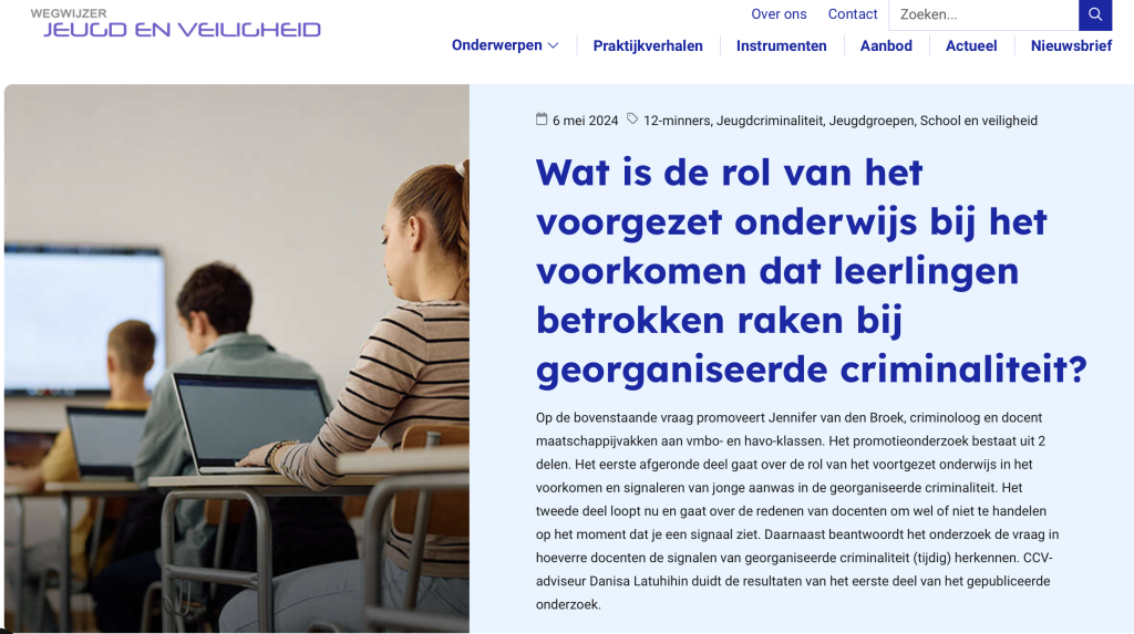 Factsheet onderzoeksresultaten naar rol onderwijs bij leerlingbetrokkenheid bij zware en georganiseerde criminaliteit